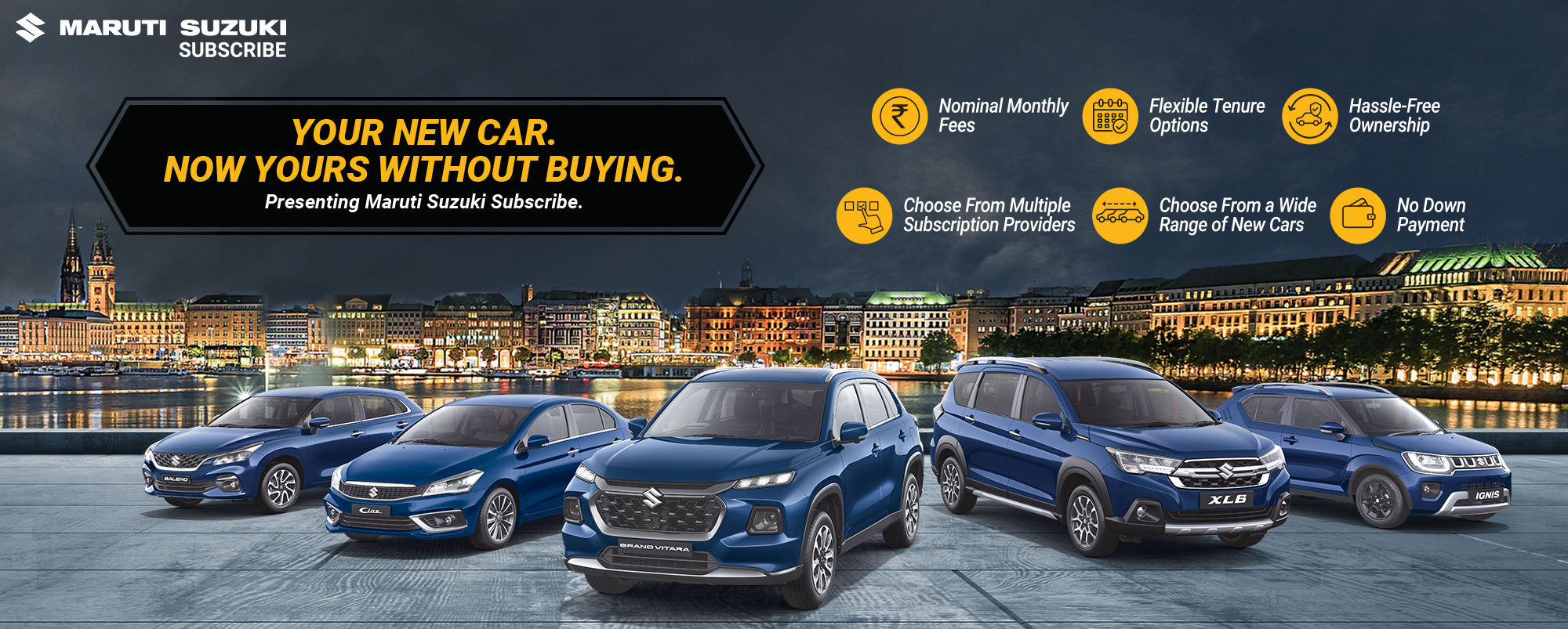 Maruti Suzuki Subscribe enables all customers to enjoy driving their preferred Maruti Suzuki cars without having to deal with all the financial responsibilities that come with owning a car.All you need to do is opt for a monthly subscription plan at a fixed monthly fee, which includes the routine maintenance and insurance costs, and choose a flexible tenure. At Prem Motors in, Gopalpura, JAIPUR, all Hatchback, Sedan, SUV, the MUV models line-up includes Baleno, Invicto, EVitara, Jimny, Ciaz, Ignis, Fronx, Grand Vitara, XL6. Here, you will enjoy Maruti Suzuki Subscribe benefits such as: